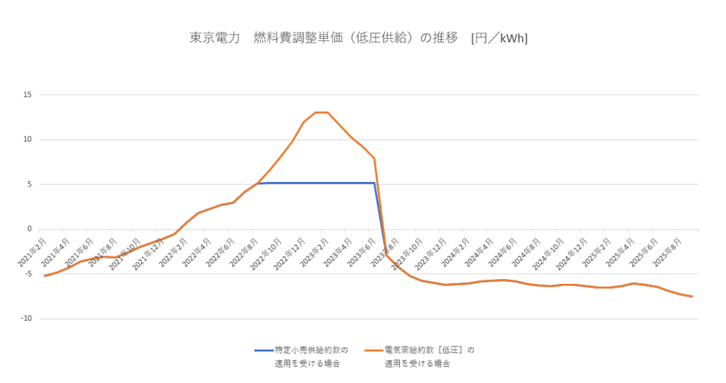 2021年・2024〜2025年(燃料費調整がマイナス期)