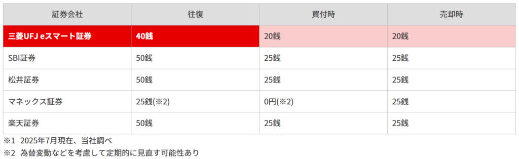 詳細は国内現物株式 手数料|三菱UFJ eスマート証券をご確認ください。