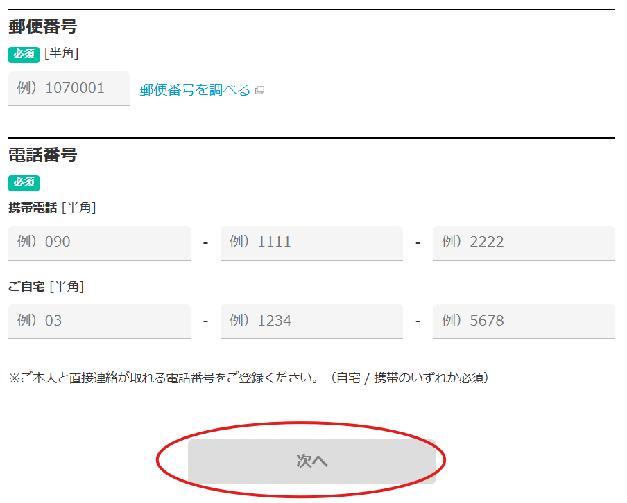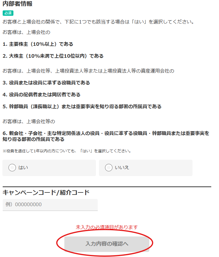 すべて入力したら、「入力内容の確認へ」ボタンをクリックします。