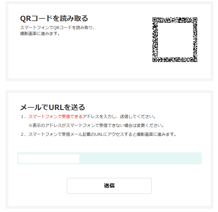 「QRコードを読み取る」か「メールでURLを送る」を選択します。