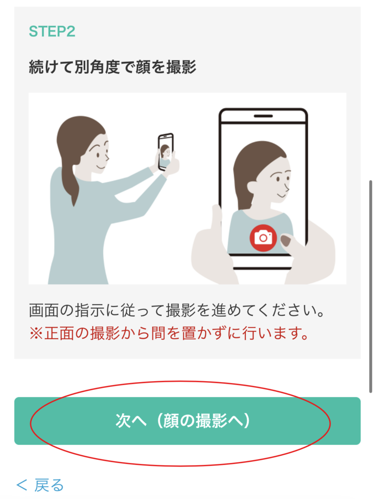 12.流れを確認し、「次へ(顔の撮影へ)」をクリックします。