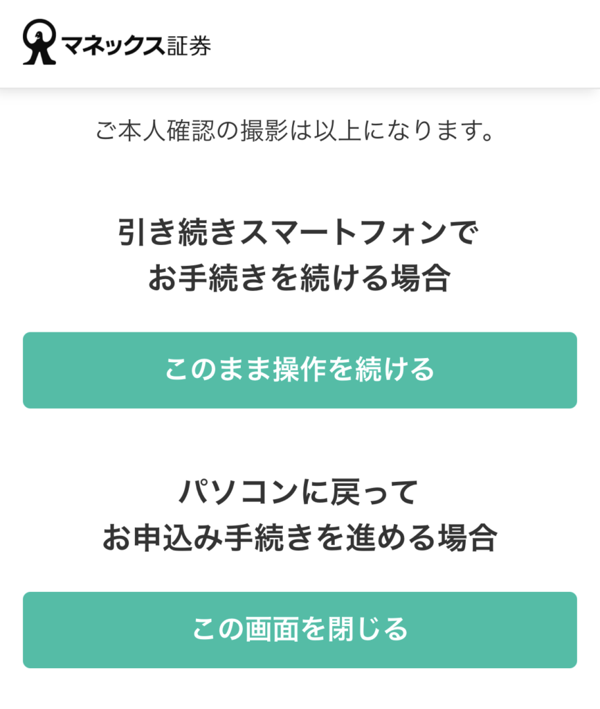 14.引き続きスマホで操作するか、パソコンに戻るか選択します。