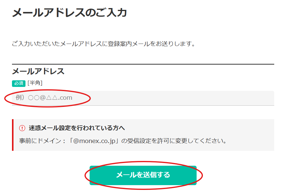 4.メールアドレスを入力し、「メールを送信する」をクリックします。