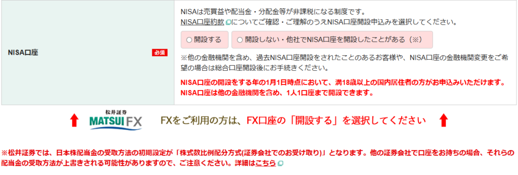 7.「個人口座開設(STEP4:お取引情報の入力)」画面が開きます。MATSUI Bank口座開設申込みをするか・特定口座開設申込みをするか・投資方針・同時口座開設のお申込みをするかなどを入力していきます。「同時口座開設のお申込みをするか」については、「松井証券に任せる」がおすすめです(初めて投資する人や忙しい人には「確定申告の手間がない」「税金計算のミスがない」という安心感があります)。すべて入力したら、「次の画面に進む」ボタンをクリックします。