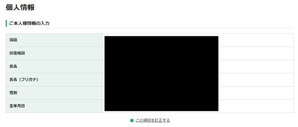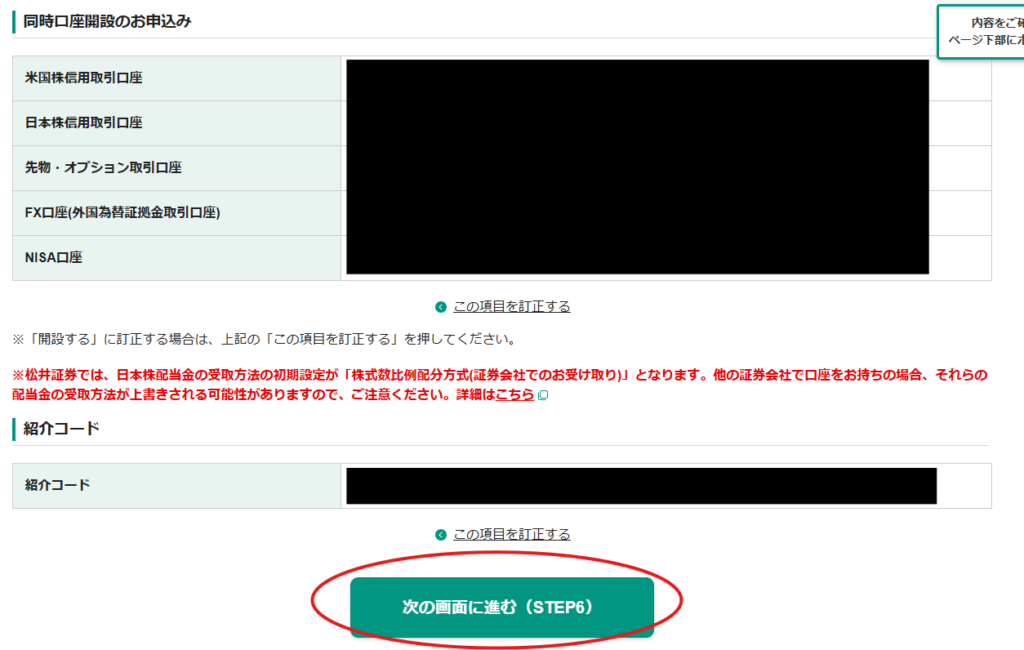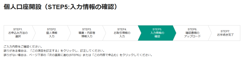 8.「個人口座開設(STEP5:入力情報の確認)」画面が開きます。内容を確認の上、「次の画面に進む」ボタンをクリックします。