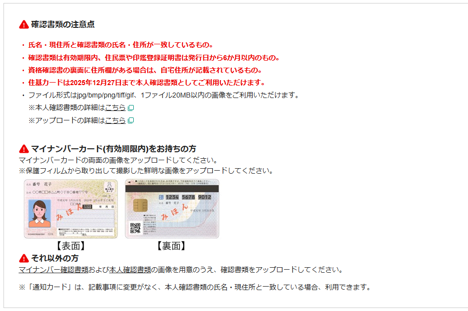 予めお手元にマイナンバーカードなどの本人確認書類をご用意いただくと、作業がスムーズに進むと思います。