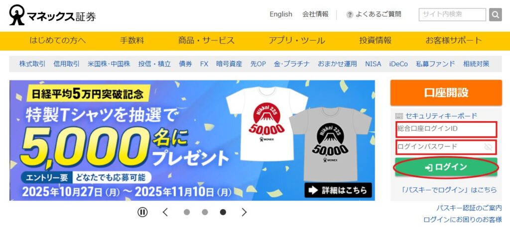 5.ログインのページが開きます。先ほど控えた「ログインID」「ログインパスワード(初期設定用)」を入力し、「ログイン」ボタンをクリックします。