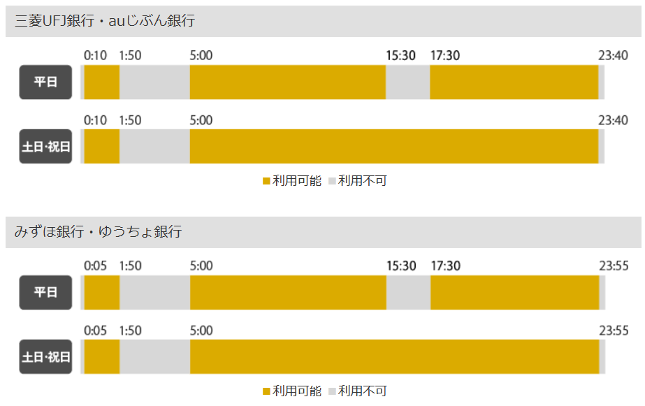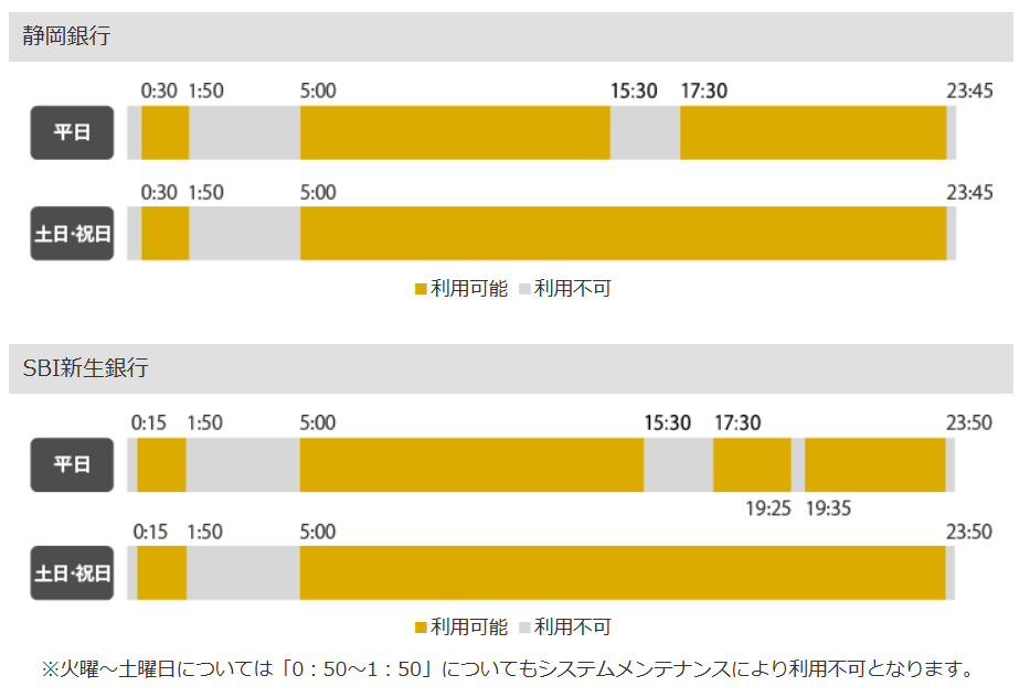 注意:その他、各銀行のシステムが停止している時間・システムメンテナンスなどにより各銀行がサービスを停止している期間は、即時入金サービスが利用できません。詳細は即時入金サービス|マネックス証券をご確認ください。