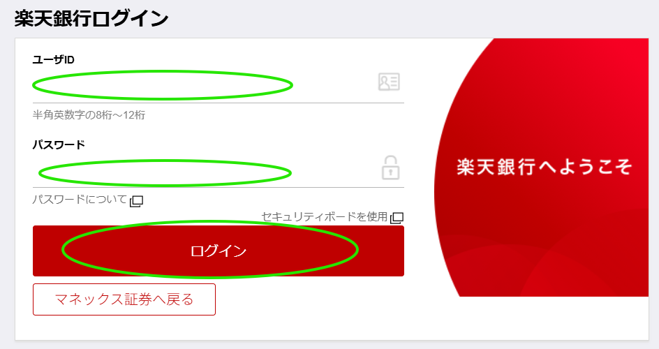 6.筆者のケースでは、楽天銀行ログイン画面が開きました。ログインします。