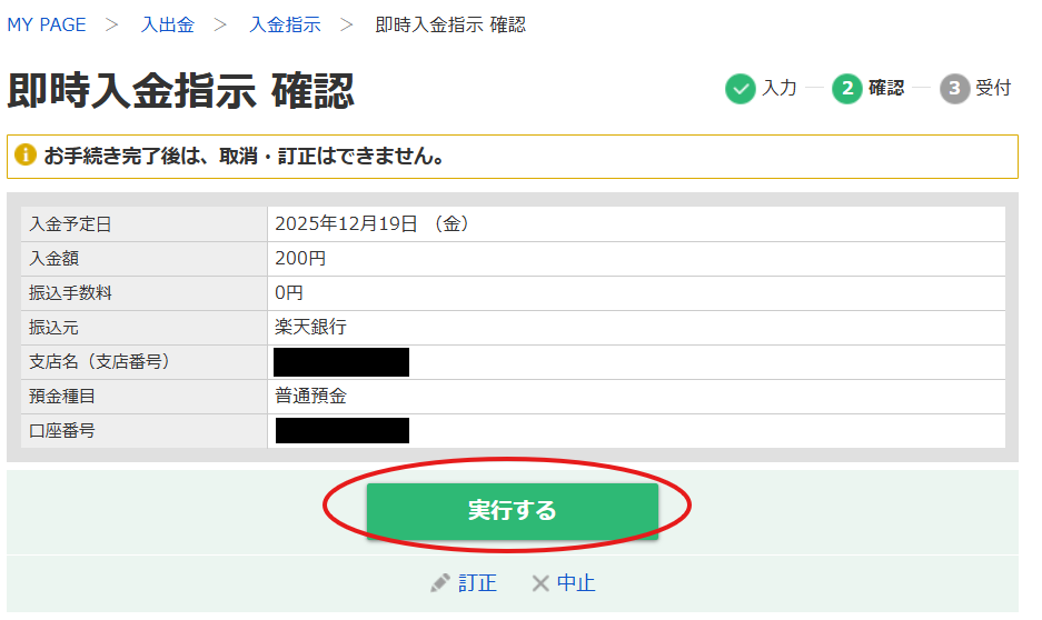 11.内容を確認し、「実行する」ボタンをクリックします。