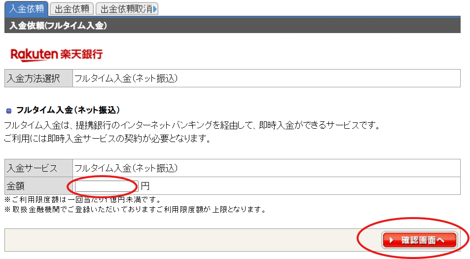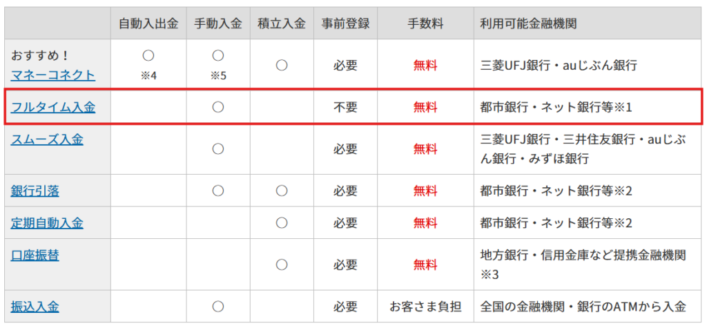 ここでは、事前登録が不要手数料が無料「フルタイム入金」についてやり方を詳しく見ていきます。