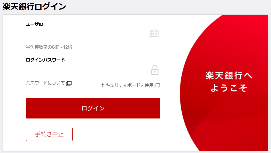 5.楽天銀行のログイン画面が開きますので、ログインします。