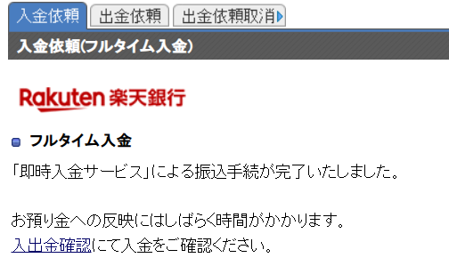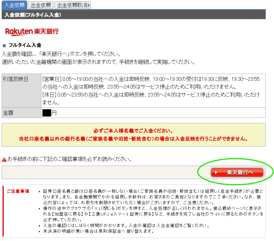 7.三菱UFJ eスマート証券の画面に戻り、「フルタイム入金」ができました。入金、大変お疲れ様でした。