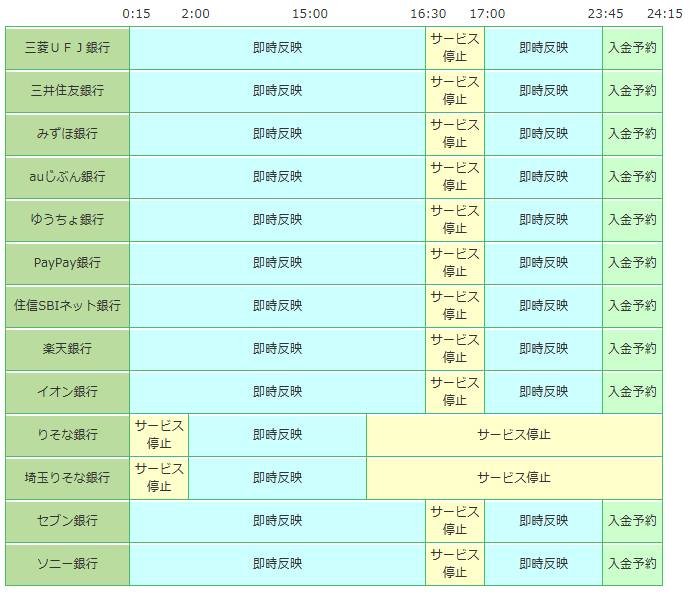 ここでは、事前登録が不要で手数料が無料の「フルタイム入金」についてやり方を詳しく見ていきます。