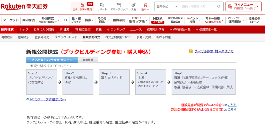 楽天証券でIPOに参加するには、やるべき手続きが2段階あります。
