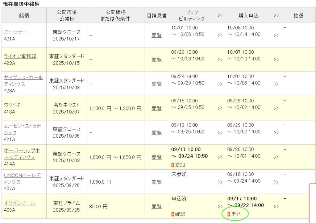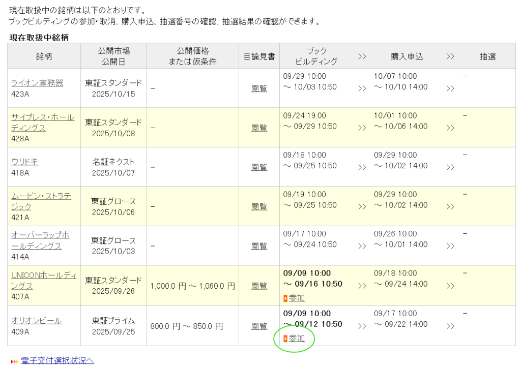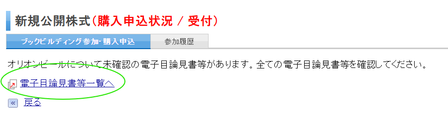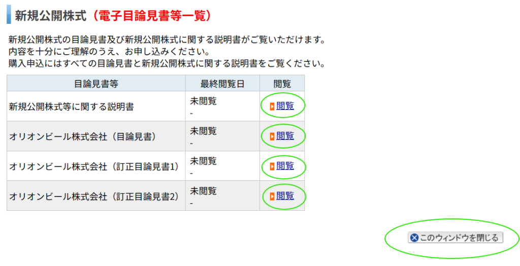 「新規公開株式(電子目論見書等一覧)」画面が開きます。