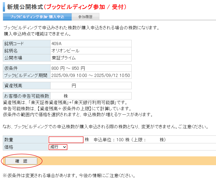 「新規公開株式(ブックビルディング参加 / 確認)」画面が開きます。