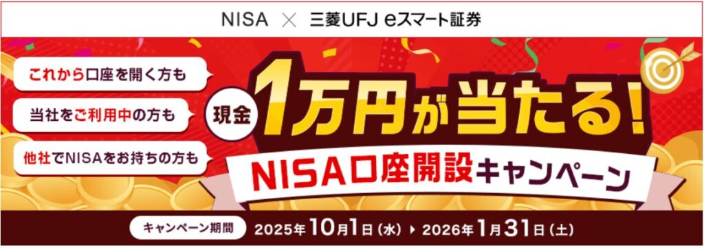 【要エントリー】総額3,000万円!三菱UFJ eスマート証券で1万円が当たるNISA口座開設キャンペーン