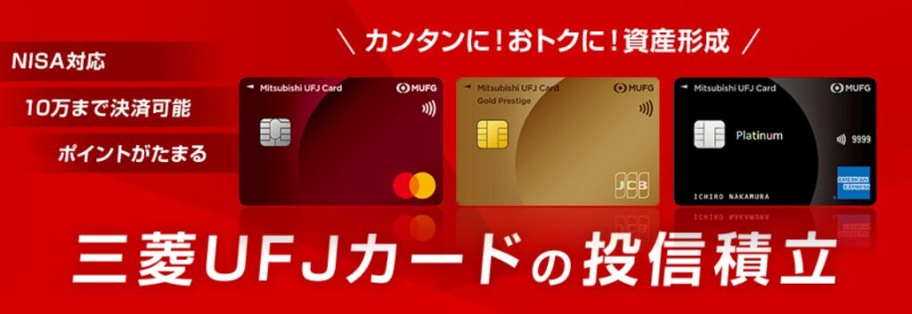 三菱UFJカードおよびau PAY カードのクレカ積立でのポイント還元あり。