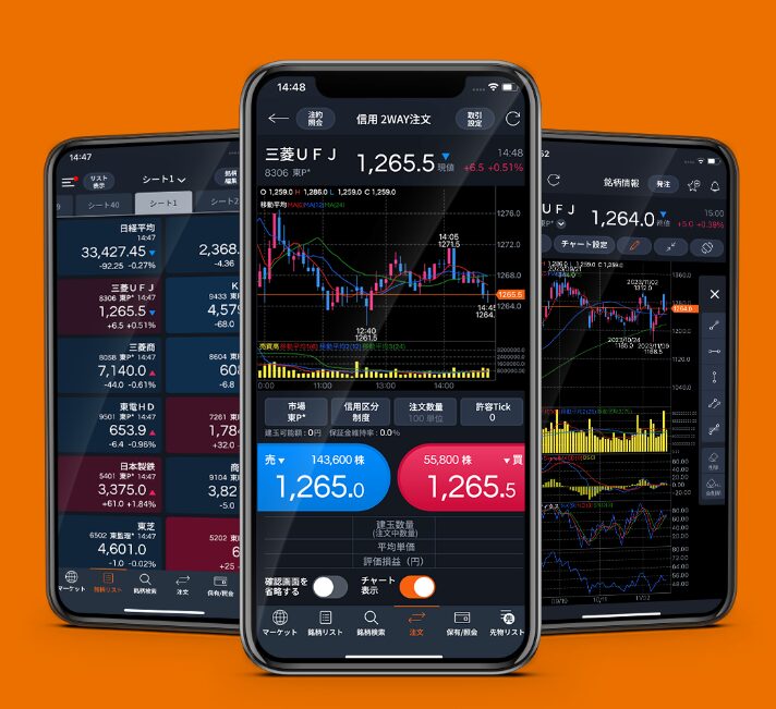 現物株だけでなく、信用取引や先物・オプション取引まで対応した本格派アプリです。